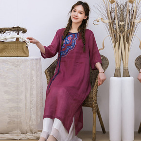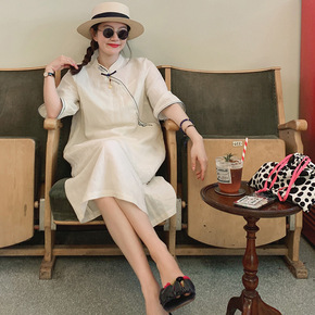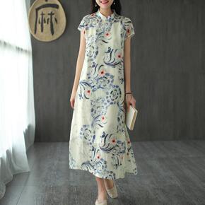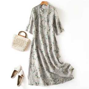 2022夏季新款苎麻连衣裙中式改良旗袍长款半袖显瘦...