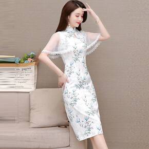 大码女装2022春夏新款中国风时尚修身显瘦改良版旗...