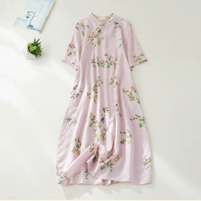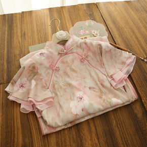 2022夏季新款粉色蚀骨旗袍中国风改良新中式倒大袖...
