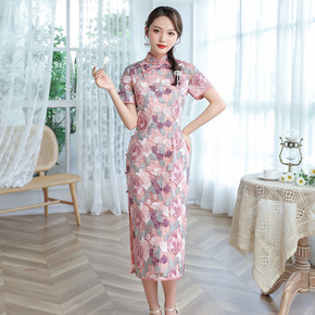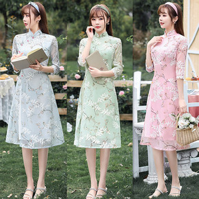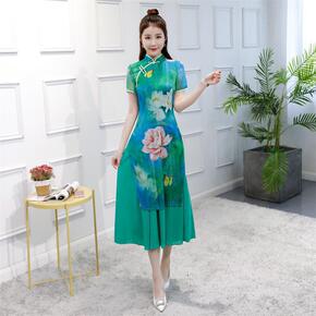 雪纺绣改良奥黛旗袍裙2021夏季新款时尚改良年轻女...