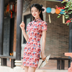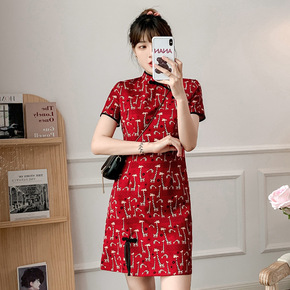 走秀旗袍2021新款年轻款红色中国风改良版复古气质...