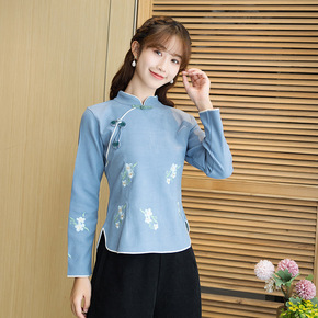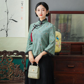 中式盘扣唐装旗袍上衣双层 春秋茶服民国风女装中国风...