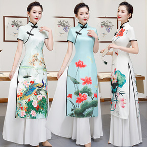 奥黛旗袍越南气质连衣裙中国风中式长款改良大摆演出旗...