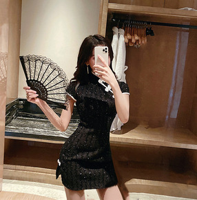 夏装2021新款女气质显瘦收腰包臀短裙炸街改良旗袍...