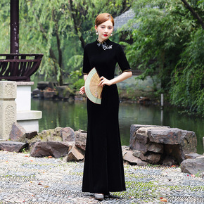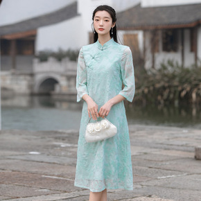 走秀旗袍2022春秋新款妈妈连衣裙中年婆婆改良旗袍...