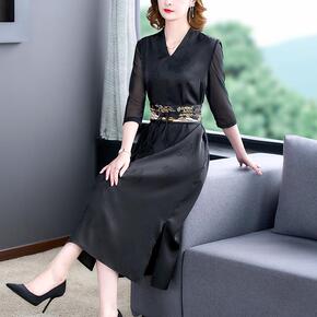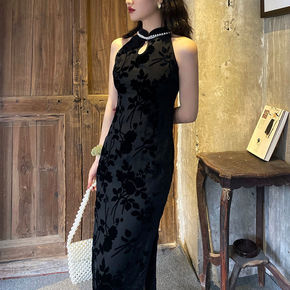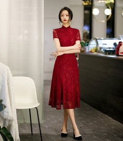 2022夏季连衣裙女洋气时尚珍珠蕾丝旗袍修身显瘦开...