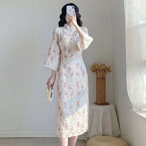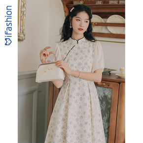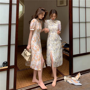 印花改良旗袍连衣裙女夏装2022年新款韩版显瘦复古...