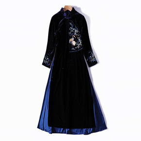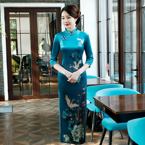金丝绒妈妈旗袍长款改良连衣裙秋冬新款中国风气质修身...