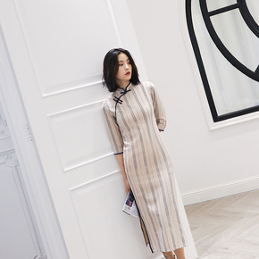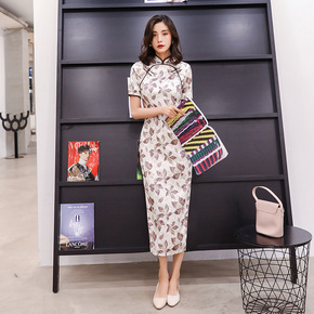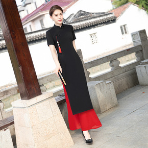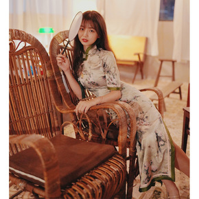 时尚改良复古中国风少女长款旗袍年轻款2020新款性...