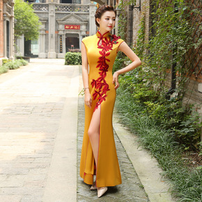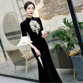 9045宴会晚礼服2020新款优雅修身旗袍长款宴会...