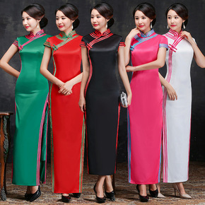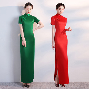 2021新品年轻款大码优雅旗袍秀表演演出服女长款显...