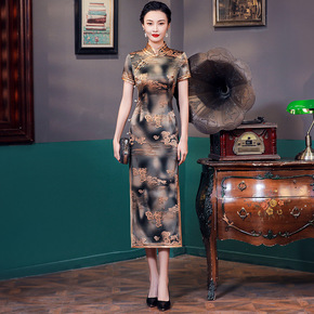 一件代发 改良优雅秋冬七分袖丝绒旗袍长款妈妈装大码...