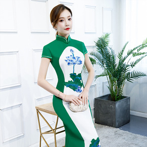 2021新款演出服旗袍年轻款长款高端优雅显瘦中国风...