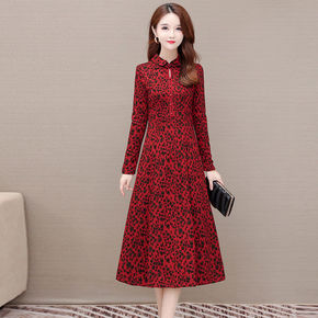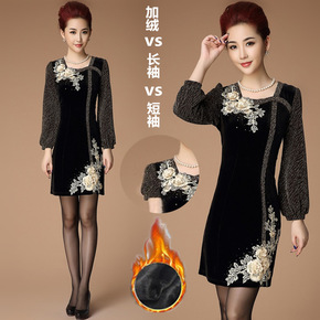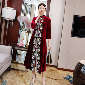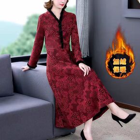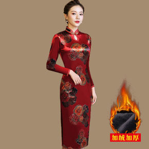 加绒加厚改良旗袍毛领连衣裙秋冬2021新款妈妈年轻...