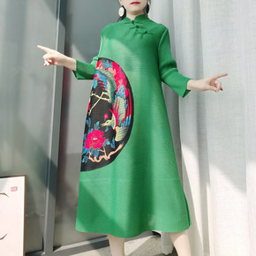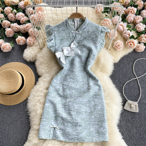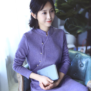 复古文艺风民国风修身显瘦针织棉中式立领旗袍连衣裙中...