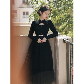 2021秋冬文艺复古国风改良旗袍网纱拼接可盐可甜修...