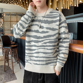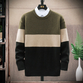 官方网店2021新款毛衣男款秋冬季保暖长袖套头条纹...