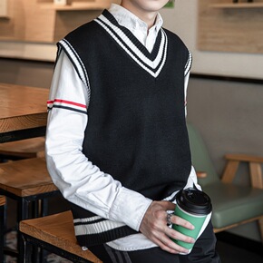 V领针织马甲女春秋季外搭毛衣背心叠穿短款宽松...