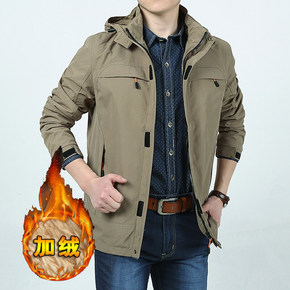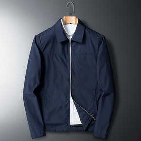 夹克男士春秋加肥加大码商务休闲中老年爸爸装薄款翻领...