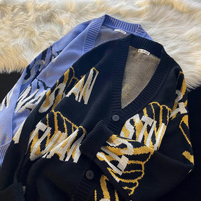 开衫毛衣针织衫外套男大码潮胖子宽松百搭慵懒over...