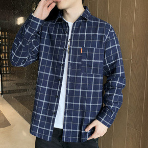 男士休闲格子衬衫春秋季2021新款韩版潮流衬衣长袖...