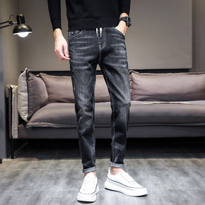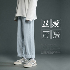 夏季薄款浅色牛仔裤男潮牌直筒宽松九分裤小脚韩版潮流...