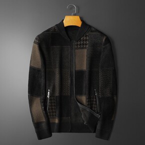 欧洲站针织开衫男夹克2021秋季新款休闲提花立领外...
