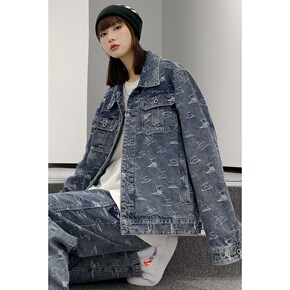 牛仔外套男春秋韩版潮流痞帅腰果花夹克ins港风复古...