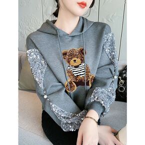 小熊刺绣连帽卫衣2021新款春季女装欧货小个子太空...