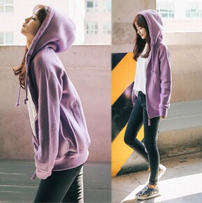 实拍#卫衣女外套加绒加厚韩版拉链中长款连帽开衫秋冬...