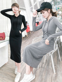 春秋装新款大码孕妇装休闲中长款连帽卫衣怀孕期外套洋...