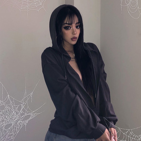 大码中长款卫衣外套女春秋薄款2021年新款宽松开衫...