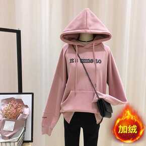 秋冬季新款女装卫衣女大码MM连帽加厚加绒宽松卫衣外...