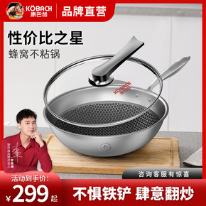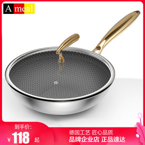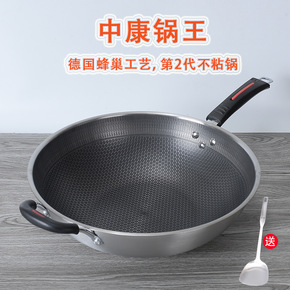 中康炒锅不锈钢蜂窝不粘锅无涂层少油烟家用平底锅电磁...