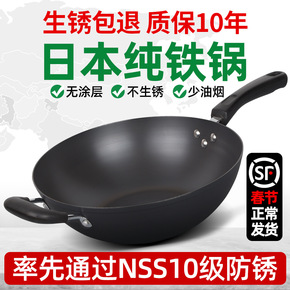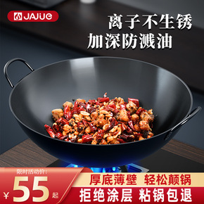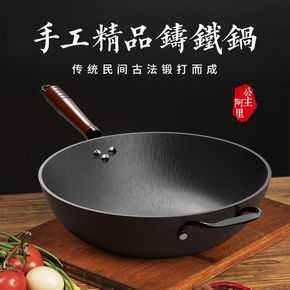 锅家用炒菜生铁锅老式双耳不粘煤气灶专用铁锅炒锅铸铁...