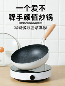 炒锅不粘锅家用平底锅电磁炉专用一两人用小型炒菜锅燃...