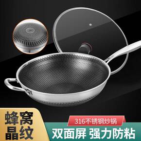 无涂层炒锅316不锈钢304不粘锅炒菜锅家用平底电...