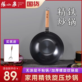 无涂层炒锅老式家用章丘同款不粘锅铁锅圆底炒菜锅燃气...