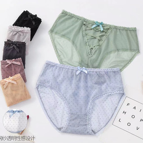 大码女士内裤胖mm200斤网纱波点性感镂空透明中腰...