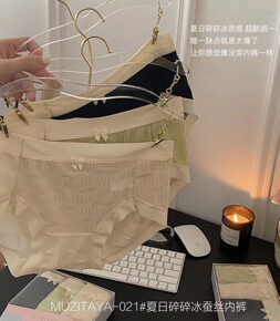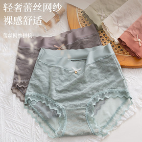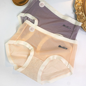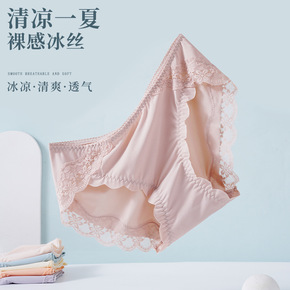 女士冰丝内裤批发夏季薄款清凉中腰蕾丝日系三角裤棉底...