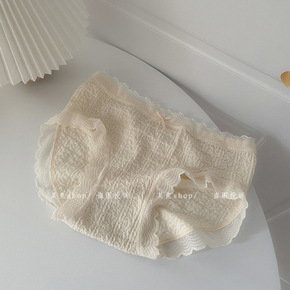 新品甜美无痕裸感中腰内裤女士包臀透气提臀蕾丝边少女...