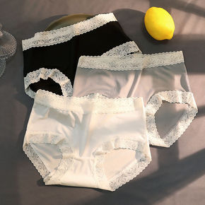 夏季面膜裤超薄无痕冰丝内裤女蕾丝边纯棉档速干一片式...