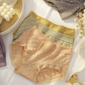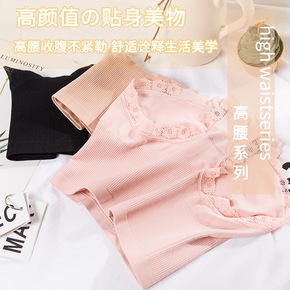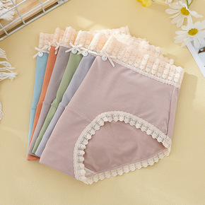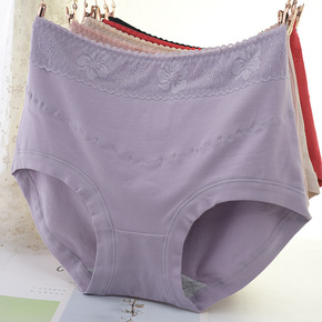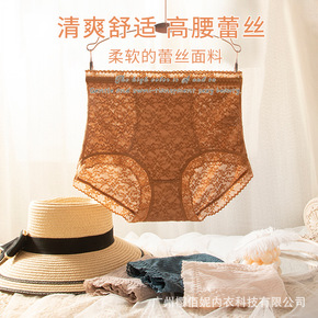 现货高腰蕾丝边收腹女士内裤大码舒适透气桑蚕丝抗菌底...
