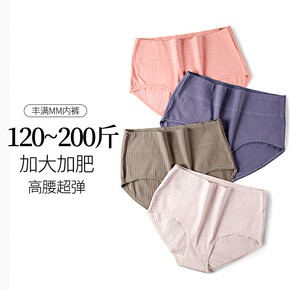 大码纯棉内裤女加肥200斤胖MM蚕丝抗菌舒适高腰内...