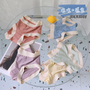 日系甜美印花冰丝轻薄中腰少女内裤 无痕舒适透气棉裆...