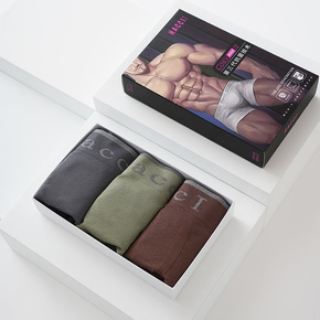 3条装魔磁秀5D吸湿排汗透气包臀平角裤男士盒装无缝...