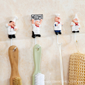 厨师树脂不锈钢挂钩门后粘胶无痕勾 厨房墙壁免钉粘贴...