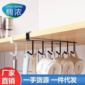 厨房铁艺挂钩无痕免钉橱柜吊柜隔板收纳挂架卧室衣柜收...