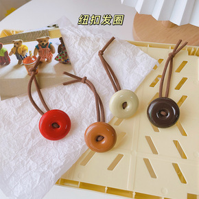 韩版ins焦糖色复古纽扣发绳扎马尾橡皮筋简约风发圈...