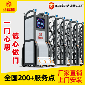 工程项目部大门伸缩门无轨道电动门自动收缩门电动折叠...